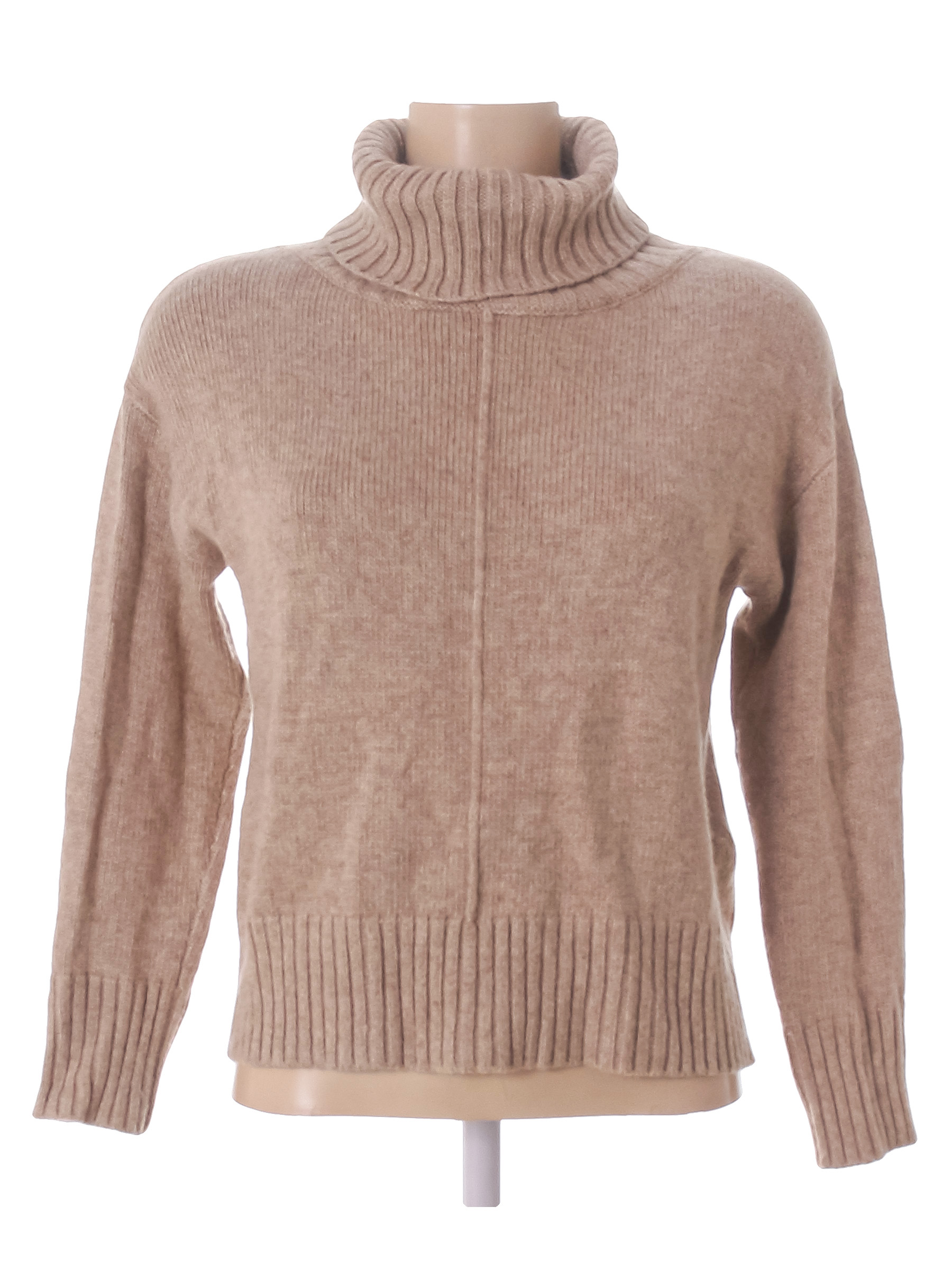Бежево-коричневый. Замер рукава указан от горловины. Ткань незначительно вытянулась по швам, немного скатался материал.