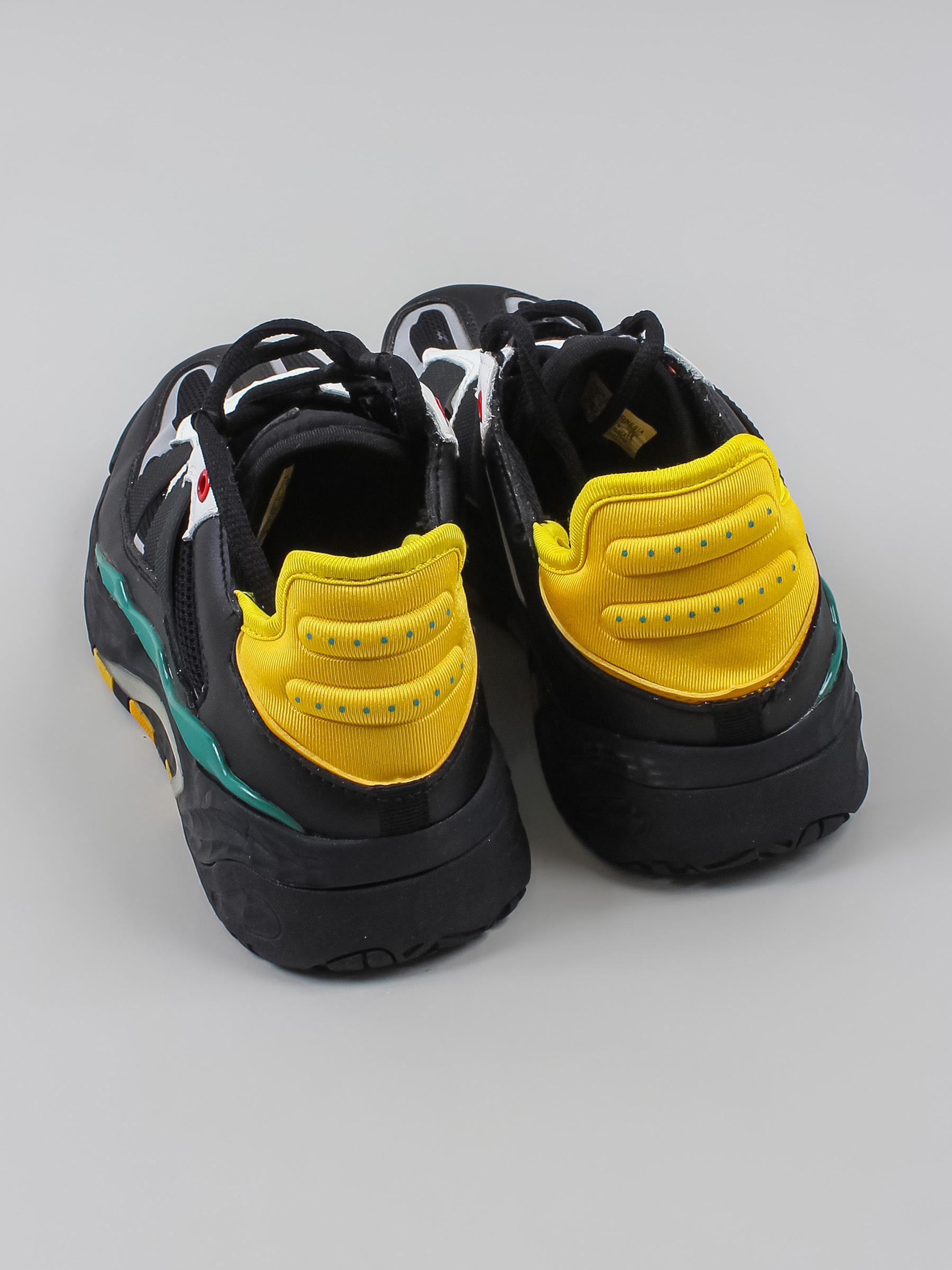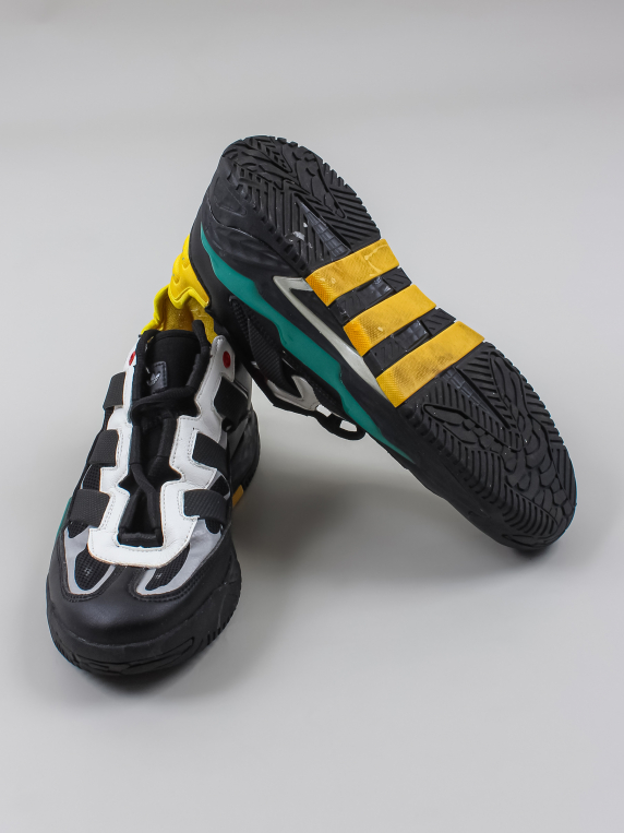 Есть катышки, заломы, есть клей по краям подошвы.