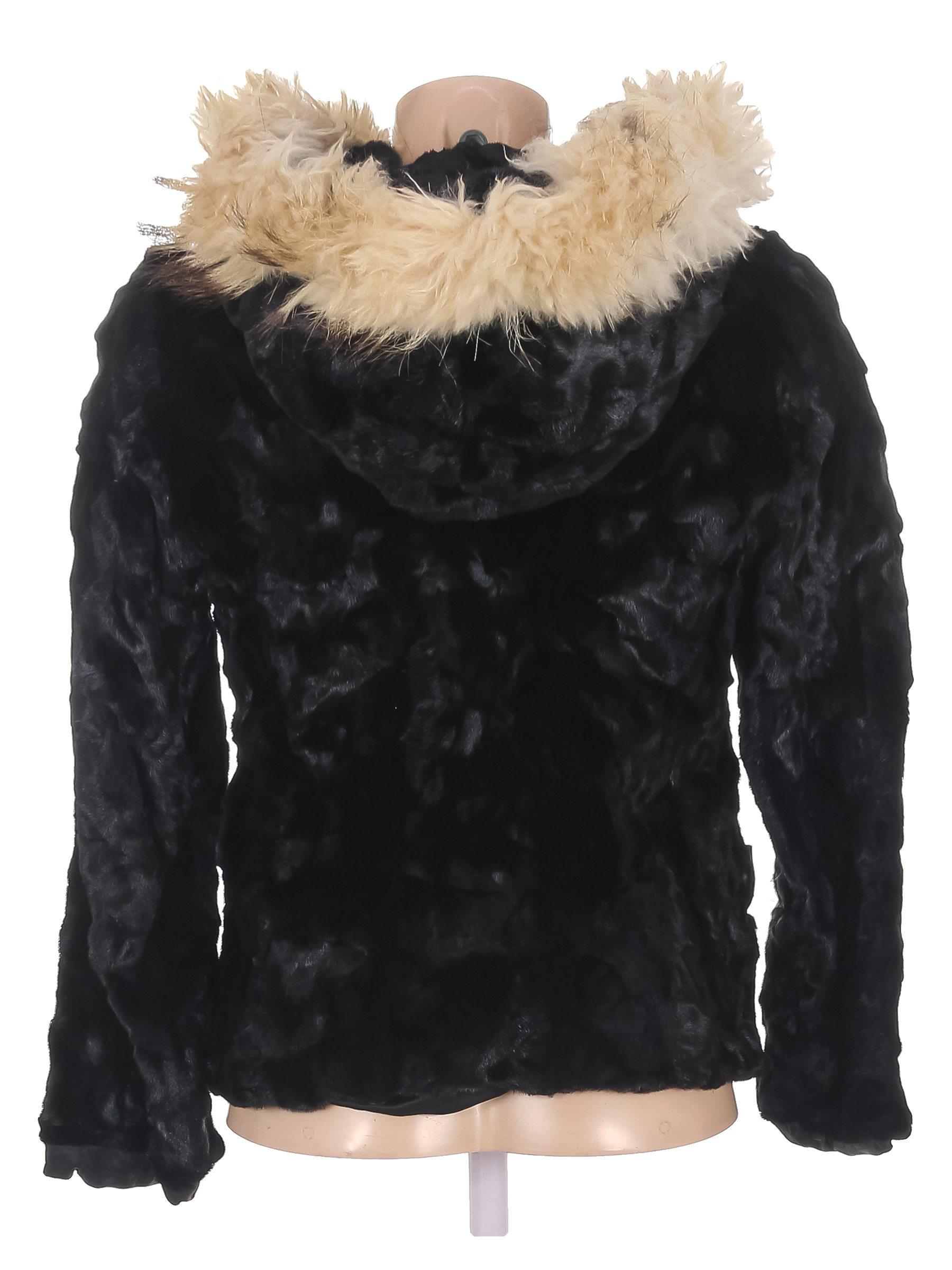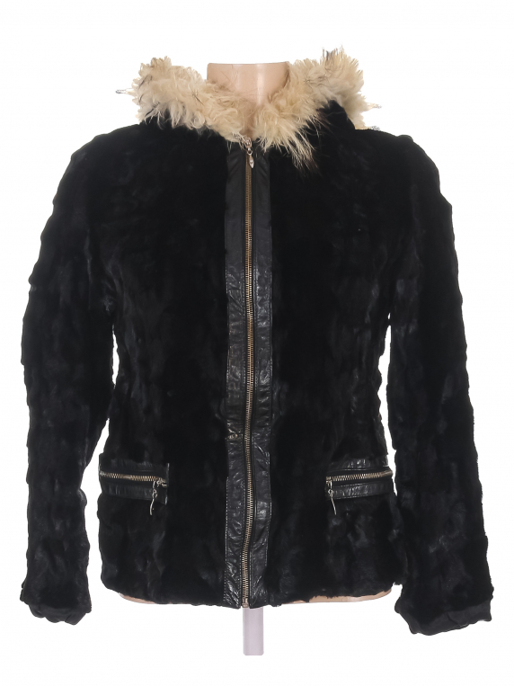 Маркировка на изделии отсутствует. Размер указан на основании замеров 38-40. На капюшоне слежался мех, на манжетах изнутри рвется подклад.