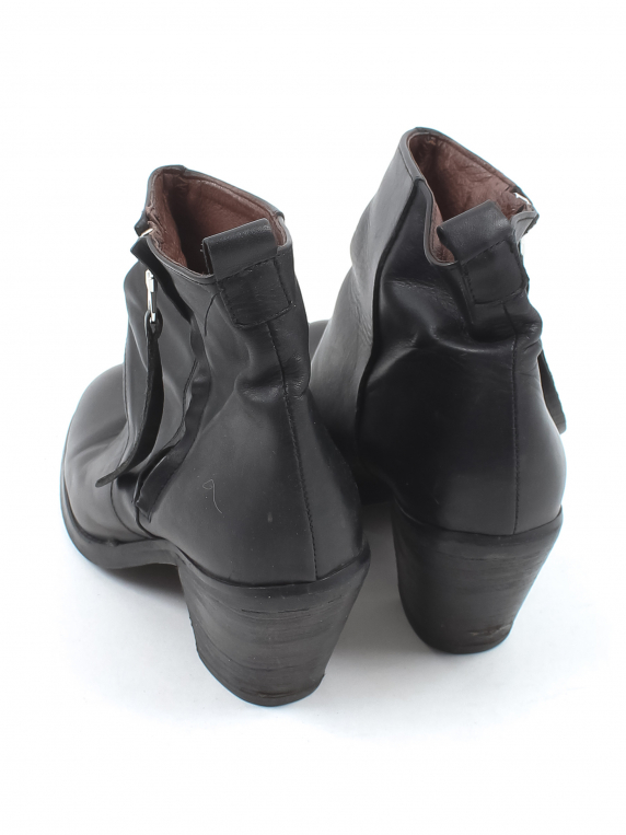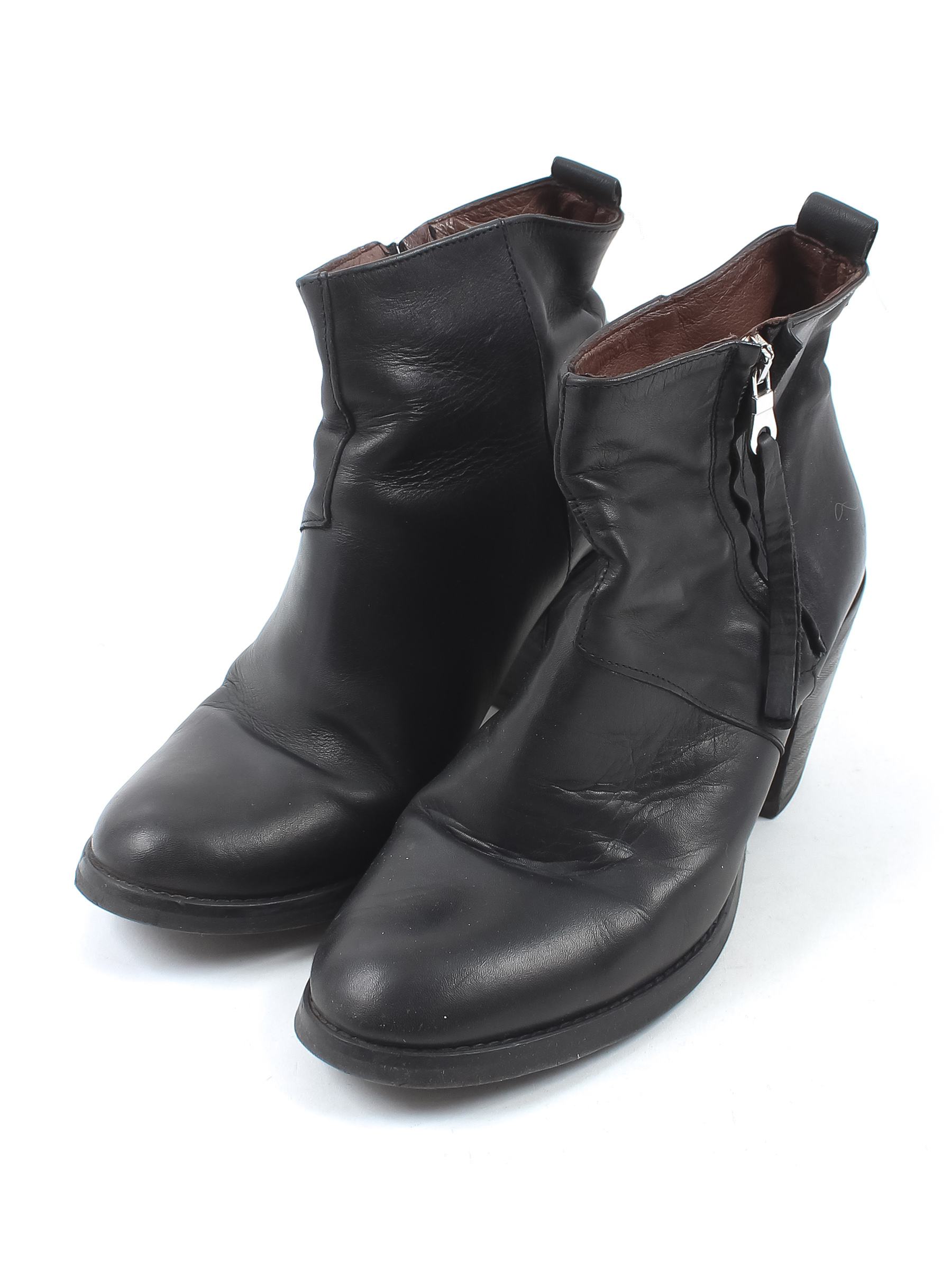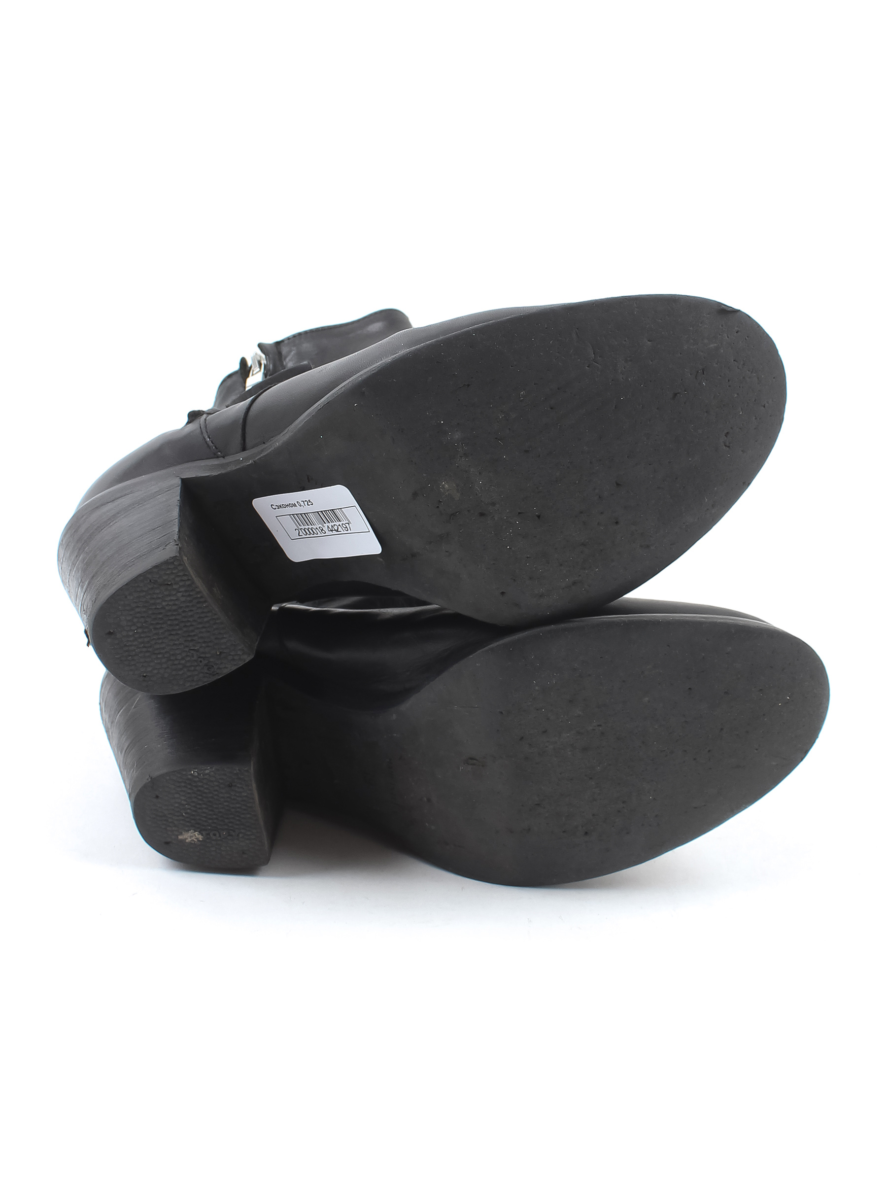Есть износ подошвы. Царапины на каблуке. Замятия материала в передней части.
