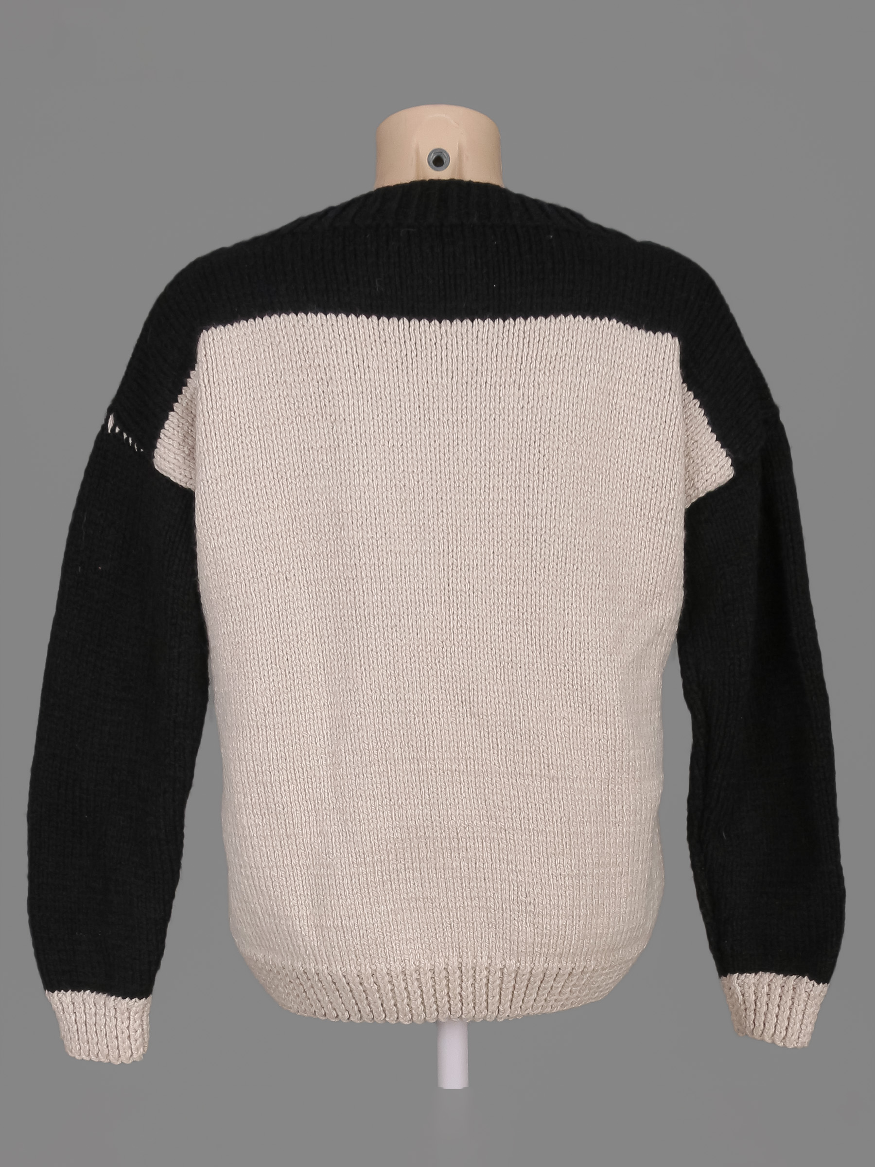 Маркировка на изделии отсутствует. Размер указан на основании замеров 42-44 . Замер рукава указан от горловины. Есть катышки.