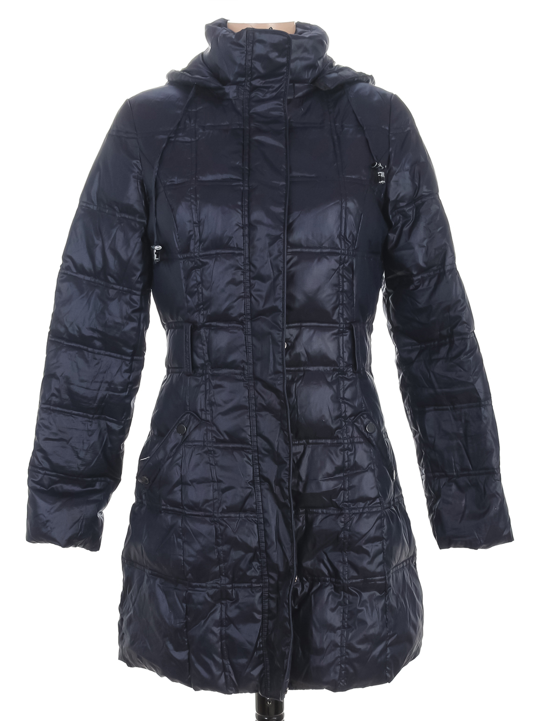 Есть небольшие загрязнения, ткань местами лоснится, сбился наполнитель, стирается покрытие на фурнитуре.