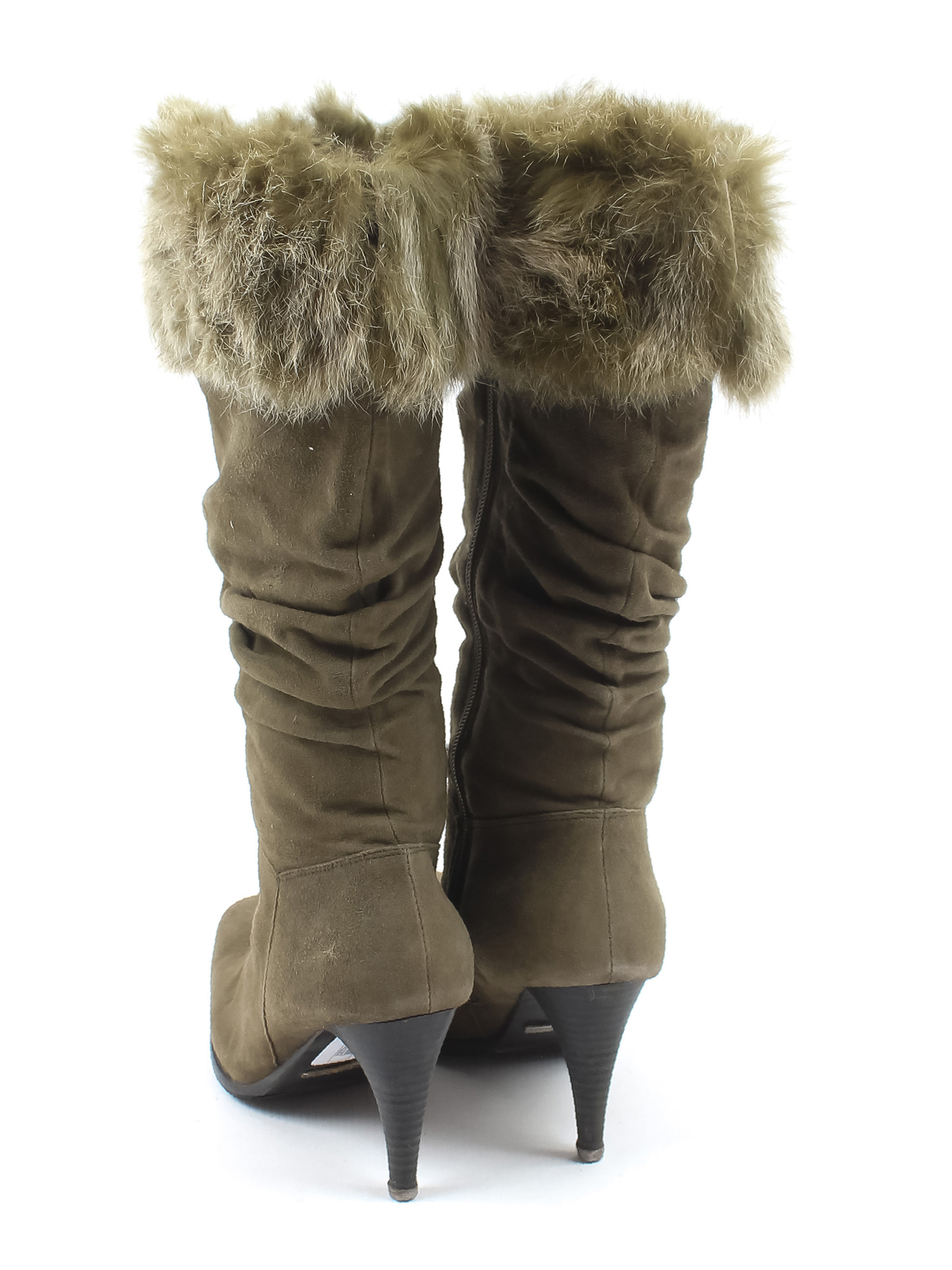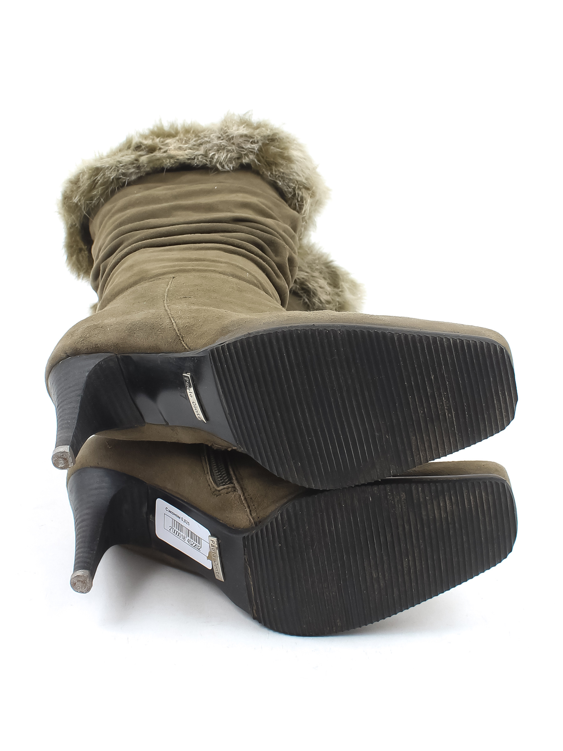 Есть небольшие загрязнения, потертости материала. Потускнел цвет. Длина по внутренней стельке указана с учетом носка.