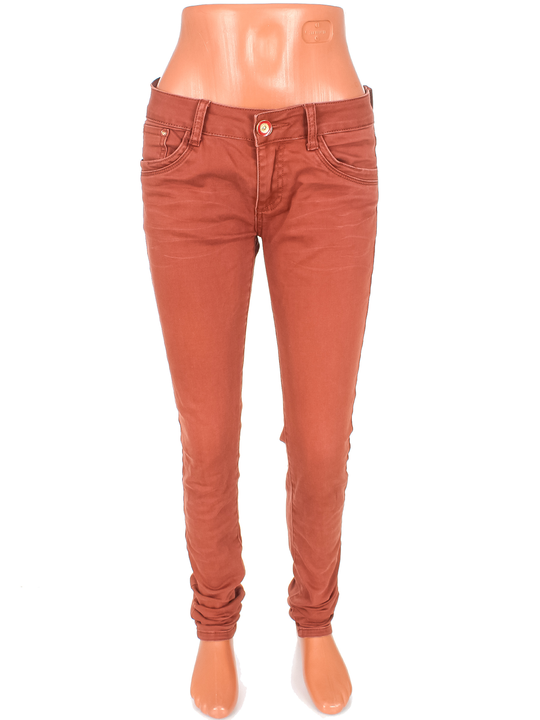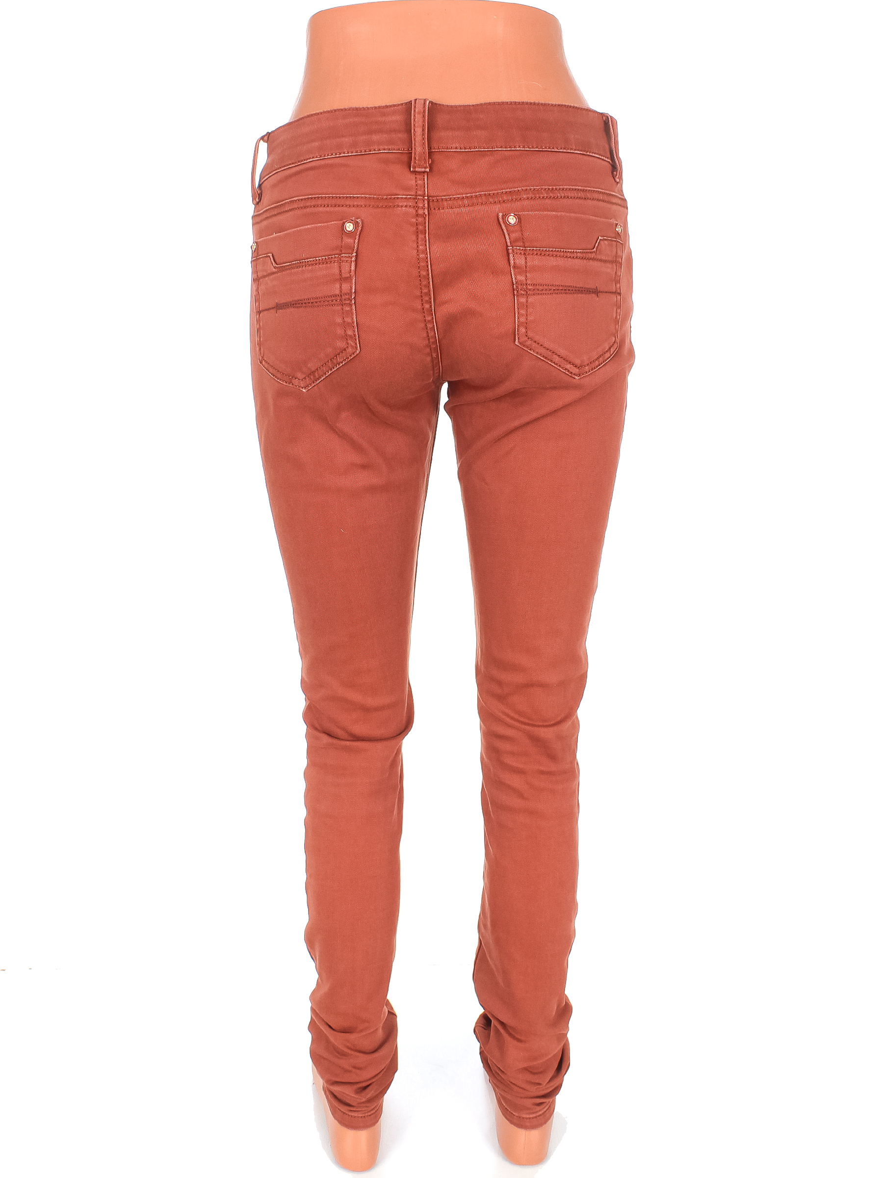 Цвет местами потускнел. Есть катышки. Колени вытянуты.