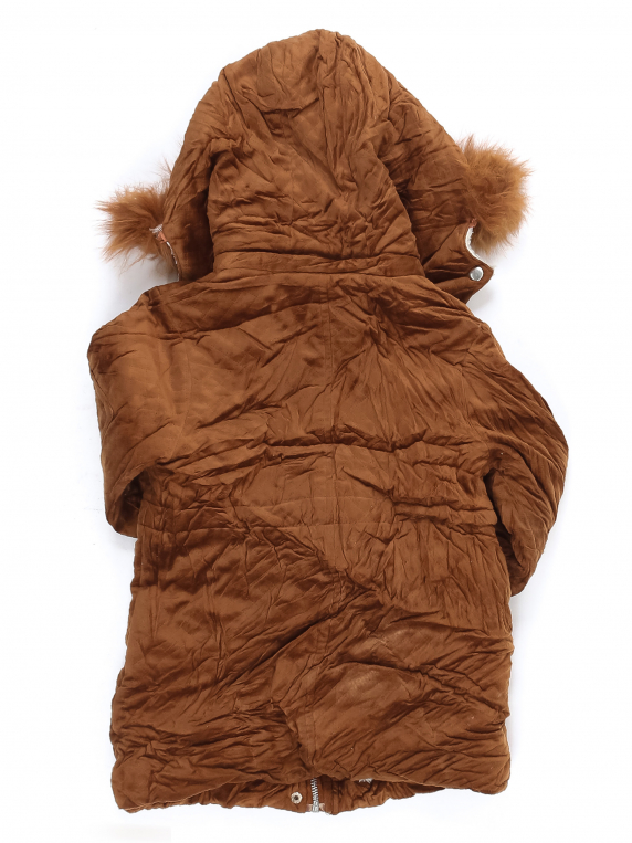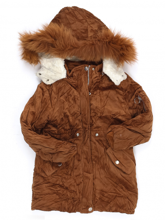 Есть небольшие загрязнения (возможно отстираются). Подкладка скаталась. Есть катышки. Отсутствует шнурок в талии.