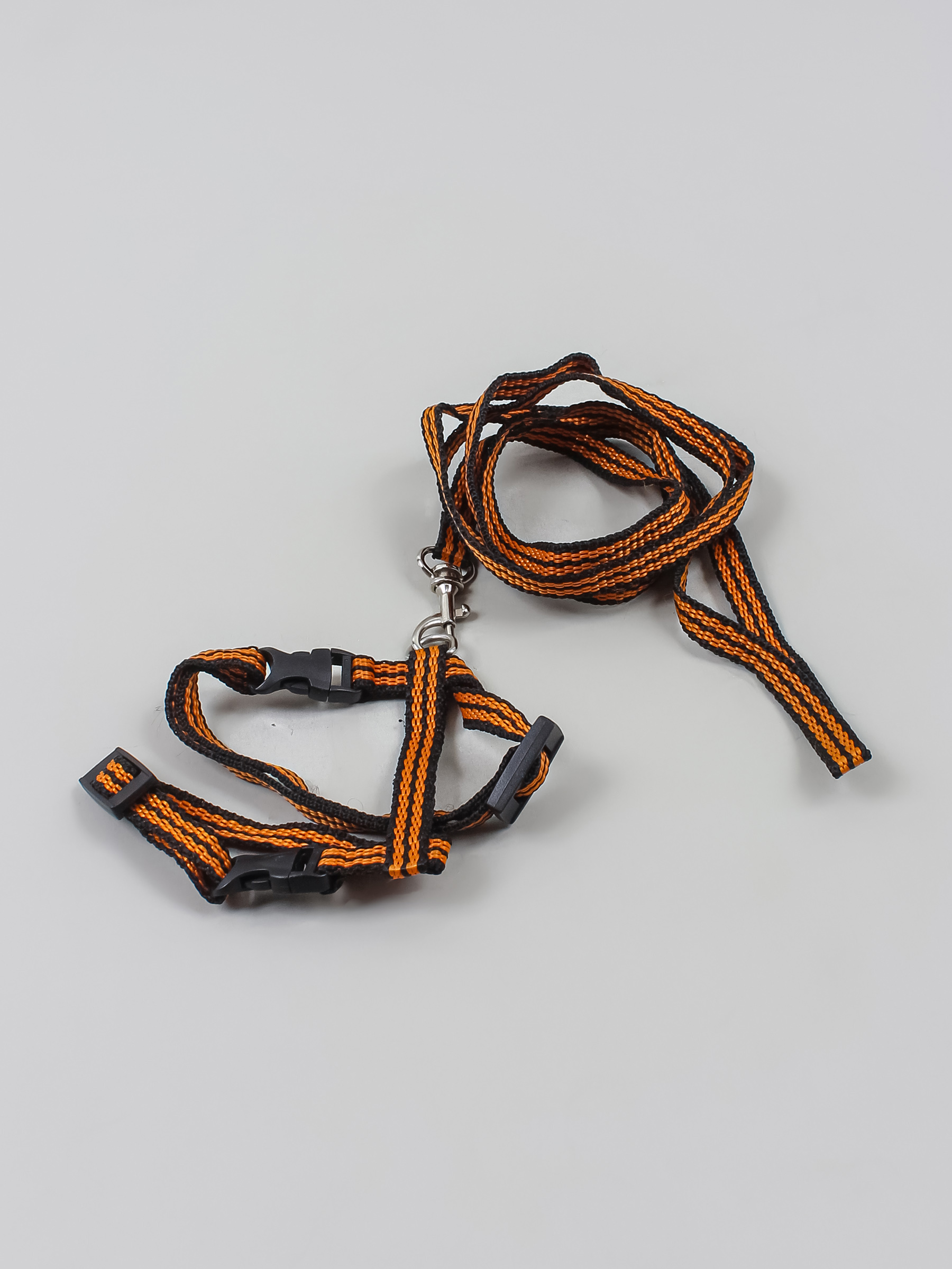 Шлейка с поводком для маленьких собак. Черно-оранжевый. Указана длина самого поводка. Без видимых следов носки.