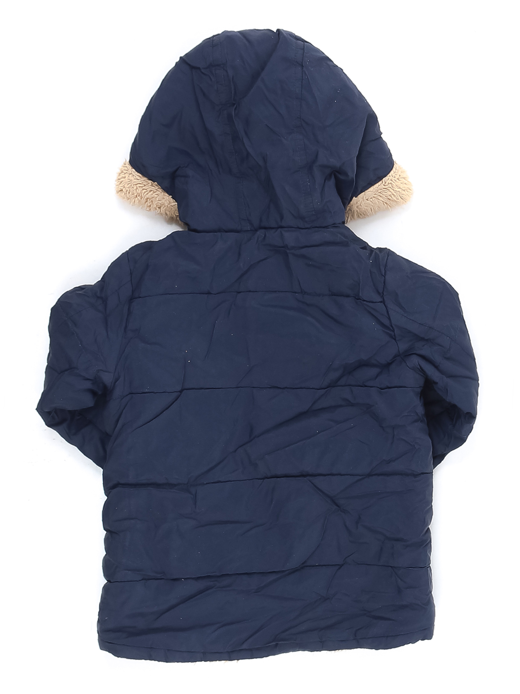 Есть небольшие загрязнения, слежался/скатался ворс. Требуется замена липучек. Потускнел цвет ткани.