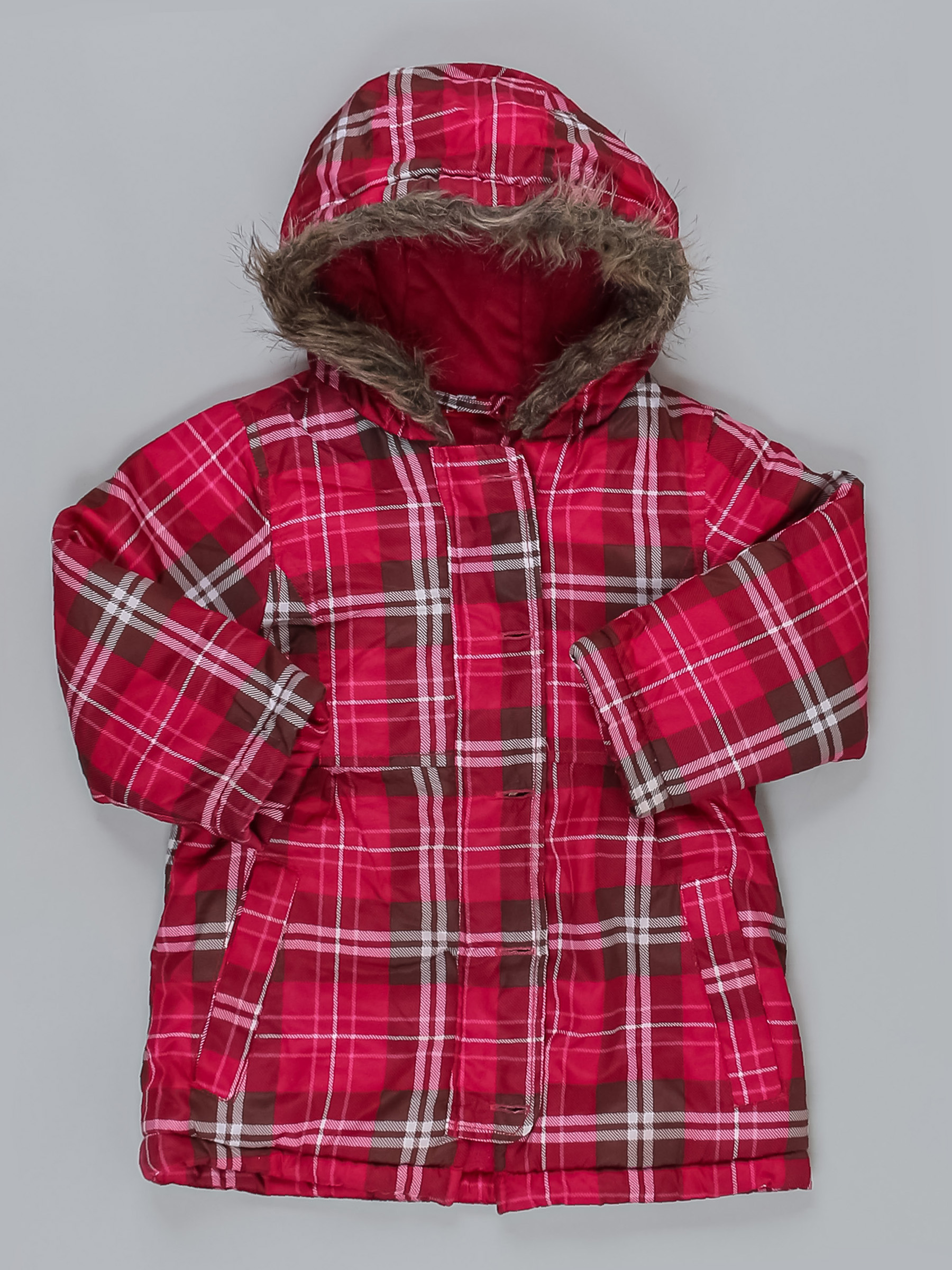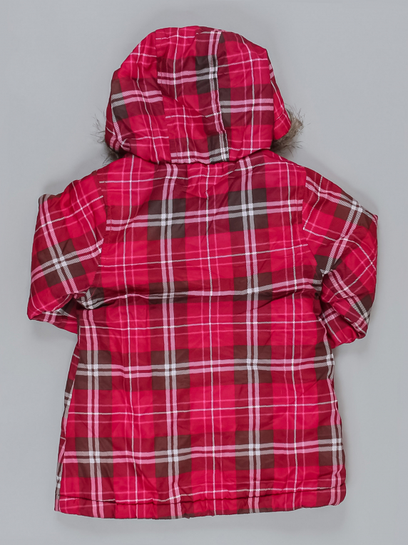 Мех на капюшоне скатался. Есть катышки с внутренней стороны. На рукавах потертости.