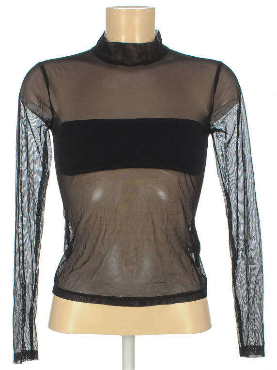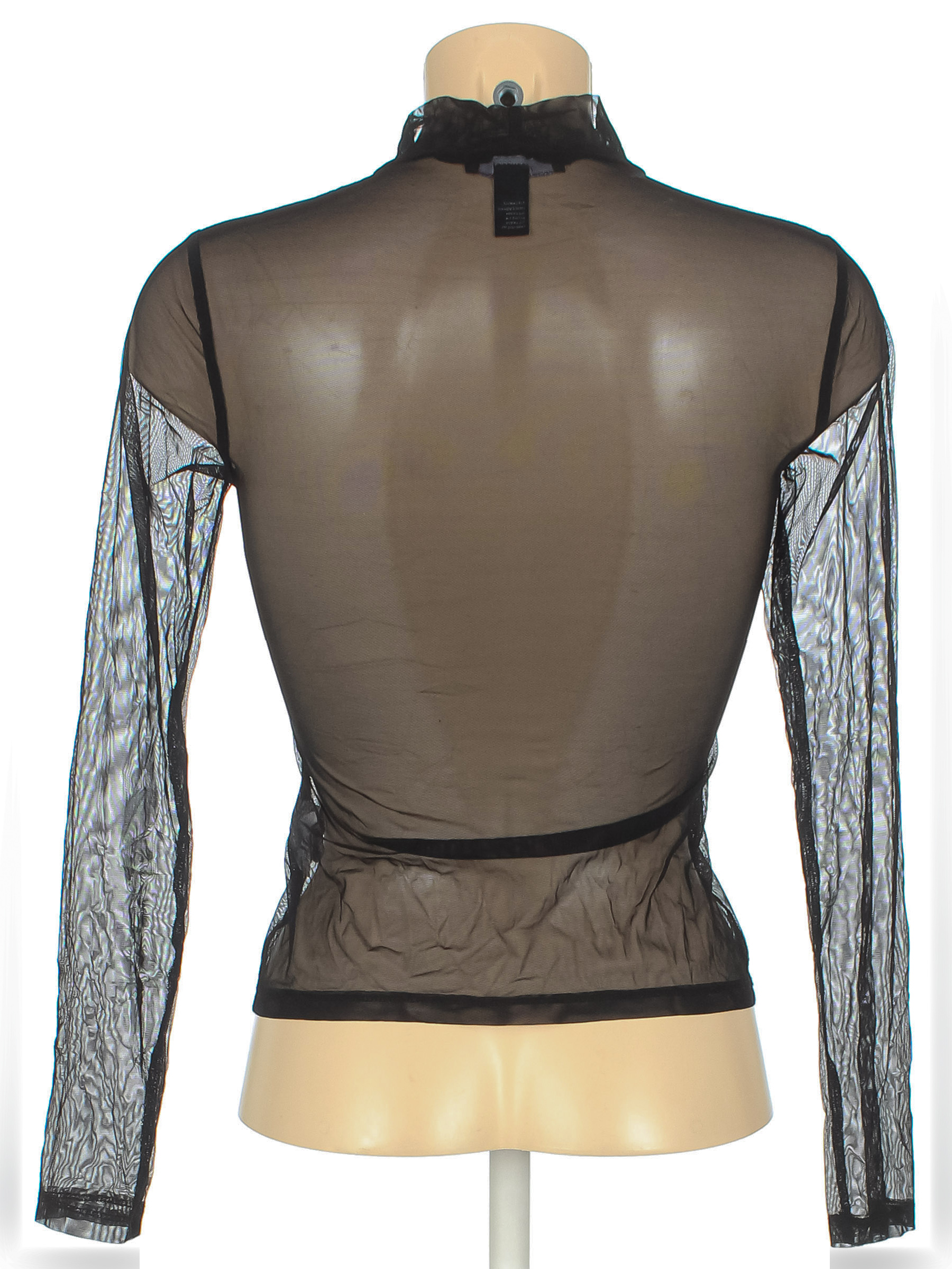 Ткань местами лоснится. Края вставки спереди не обработаны.