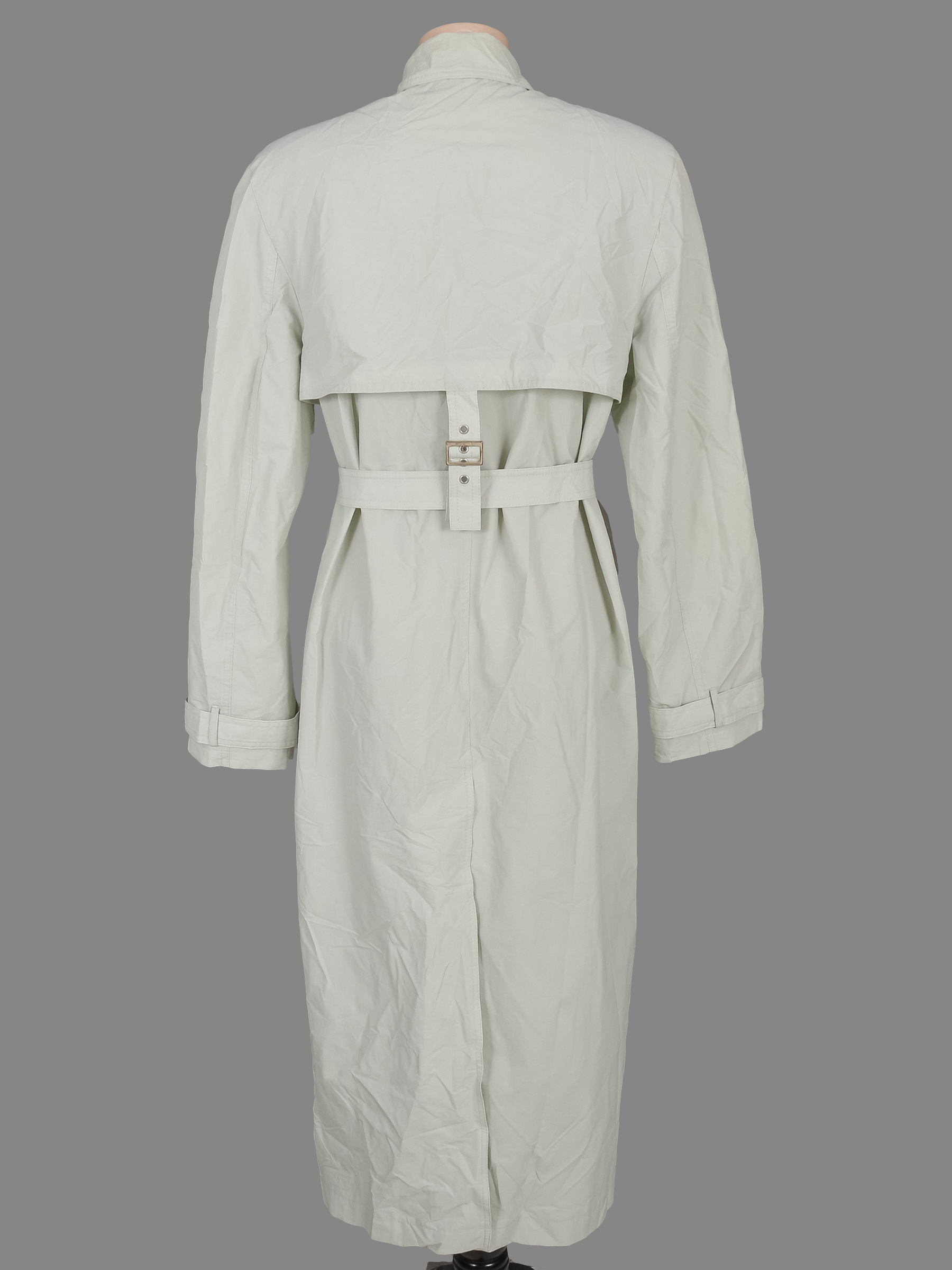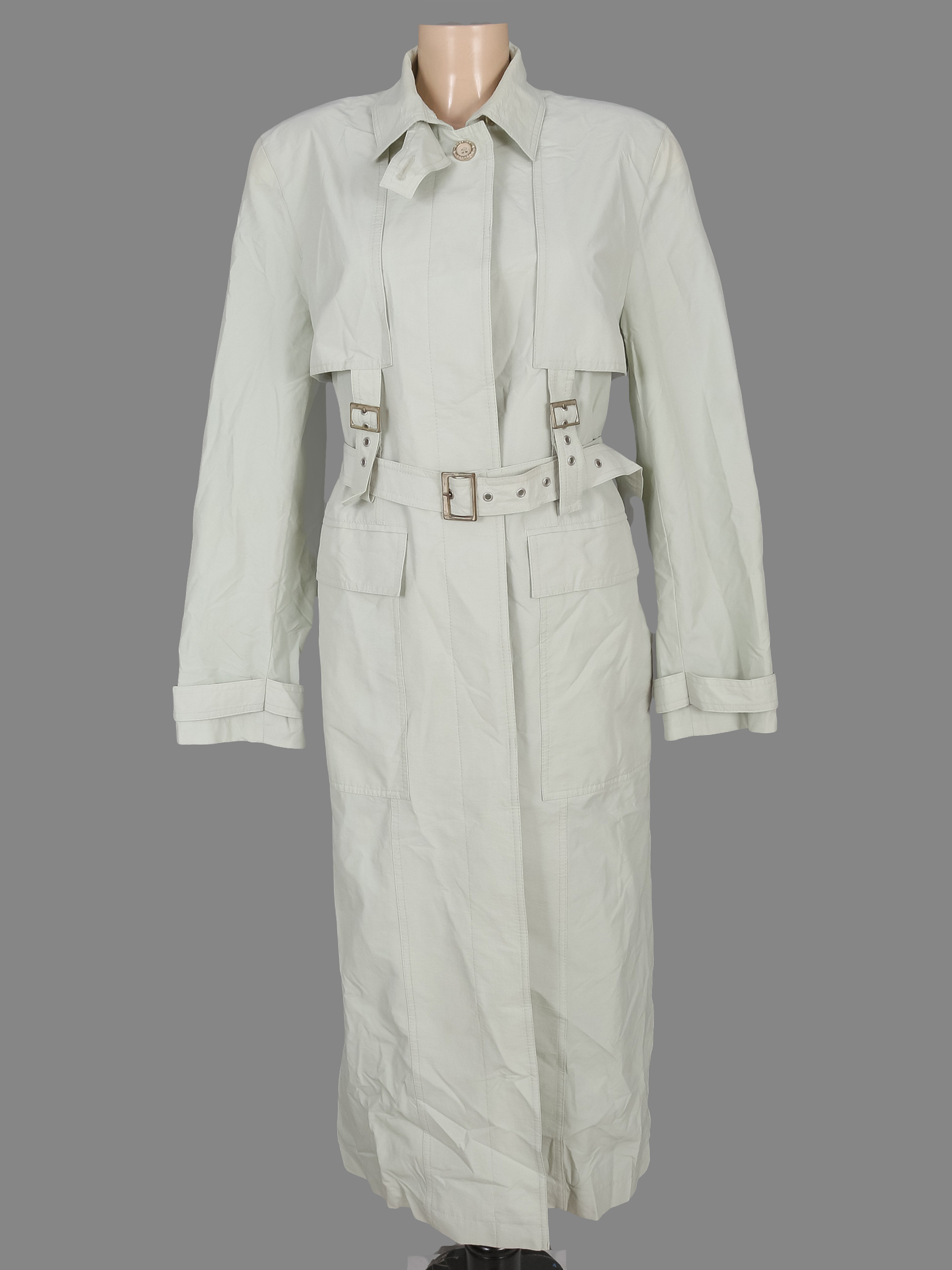 Маркировка на изделии отсутствует. Размер указан на основании замеров 46-48. Есть небольшие загрязнения. Немного потускнел цвет ткани. Потертости краски на фурнитуре.