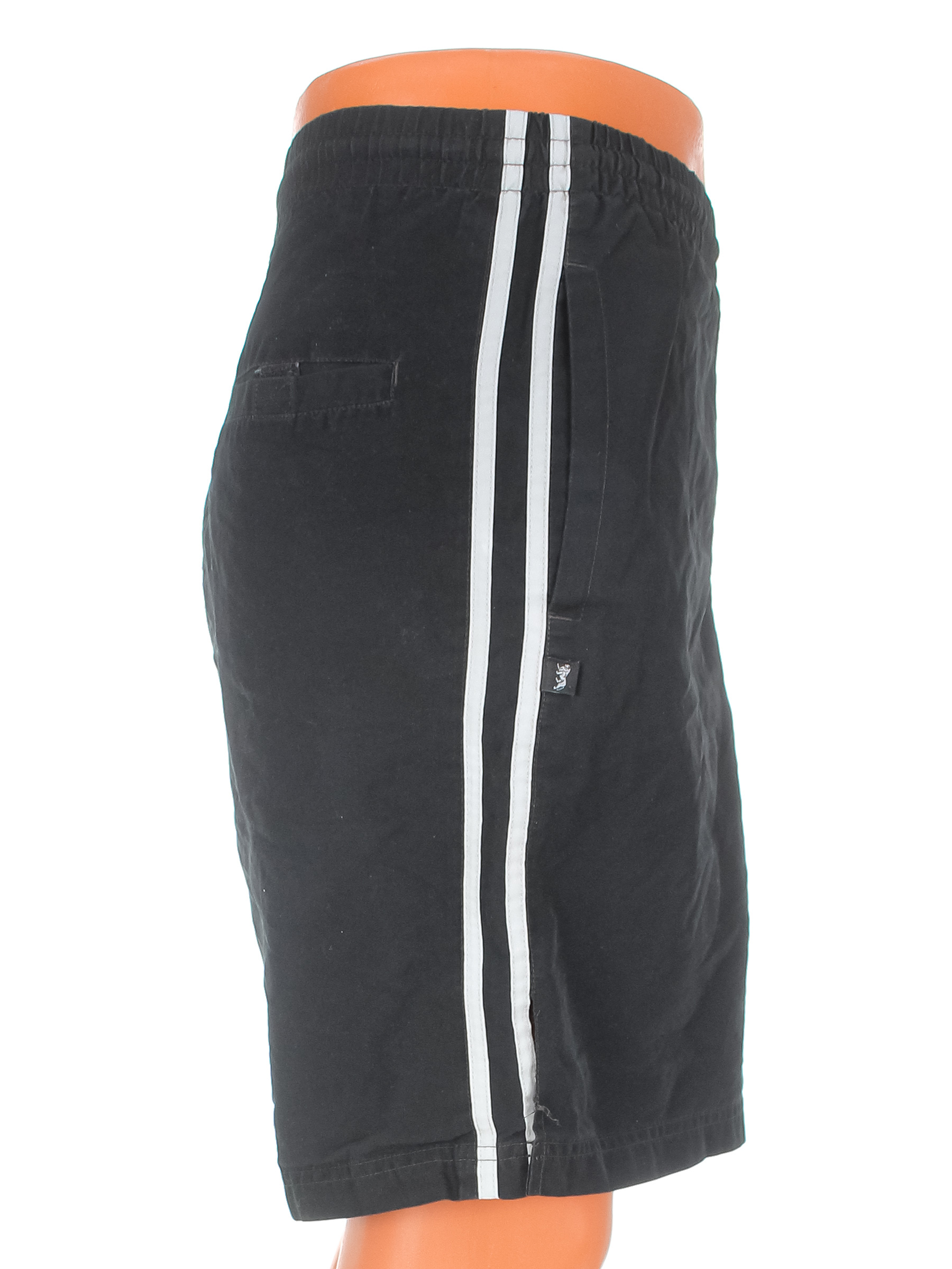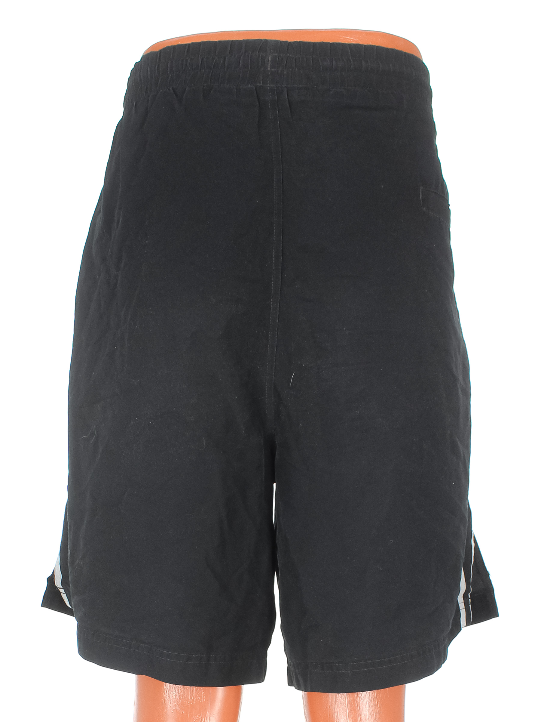 Есть загрязнения, ткань потускнела, сбоку снизу расходится ткань по шву, на поясе растянулась резинка.