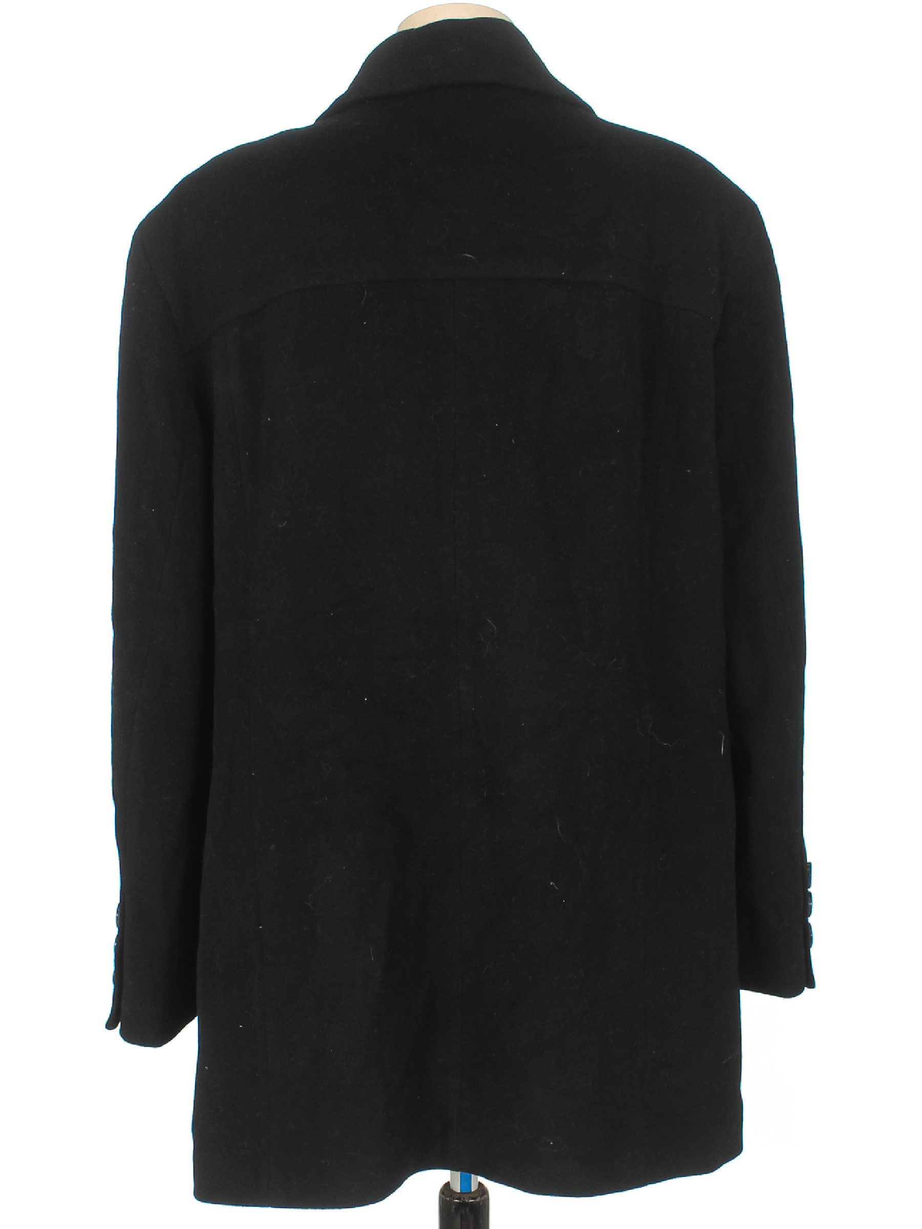Маркировка на изделии отсутствует. Размер указан на основании замеров. Есть немного катышек. Пуговку требуется перешить.