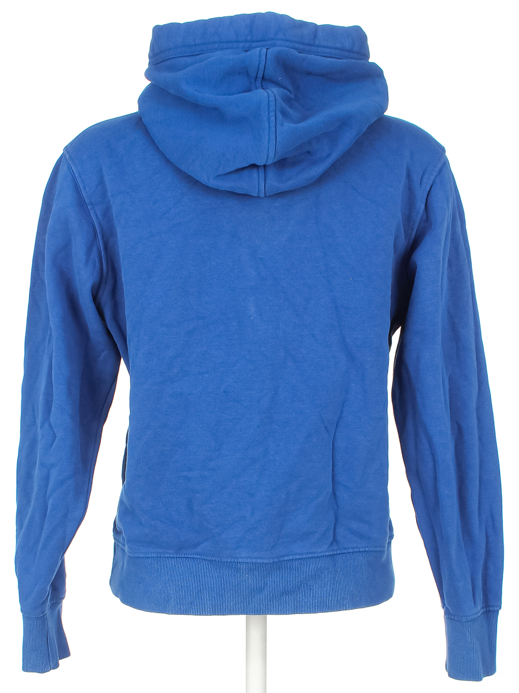 Цвет потускнел. Есть катышки. Отсутствует шнурок в капюшоне.