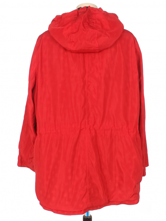 Незначительно вытянута ткань по швам. На красной стороне распускается шов сбоку. На черной стороне есть загрязнения.