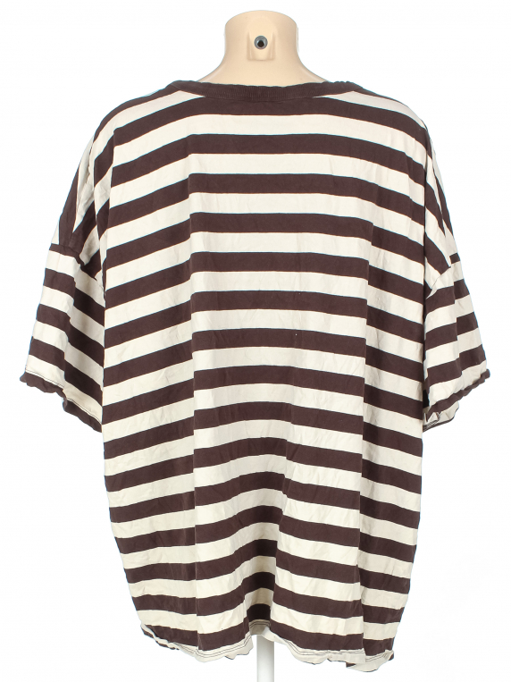 Есть катышки, перекос. Горловина растянута. Материал потускнел.