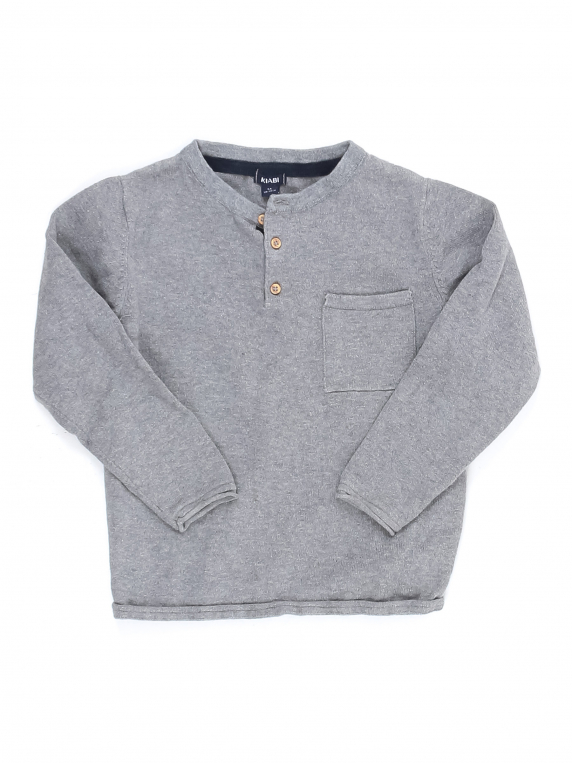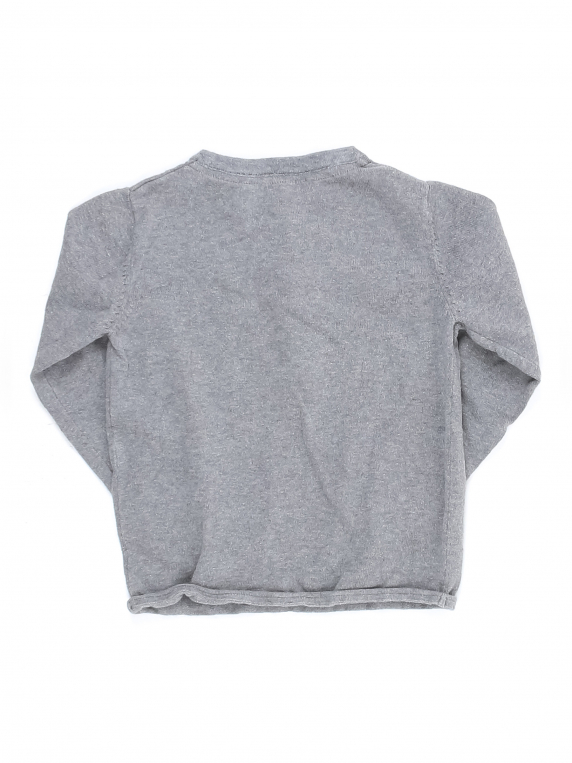 Есть мелкие катышки, ткань немного потускнела, незначительно вытянулась по швам.