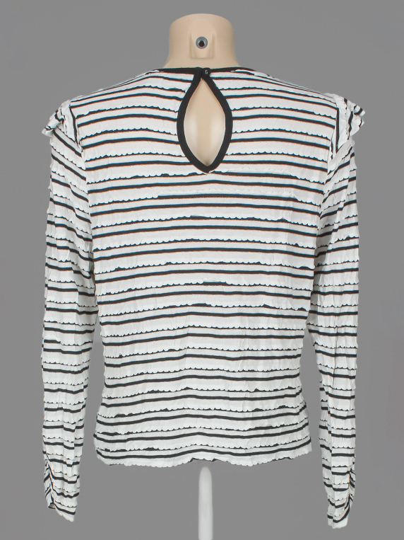 Есть немного катышек. По проймам желтые пятна.