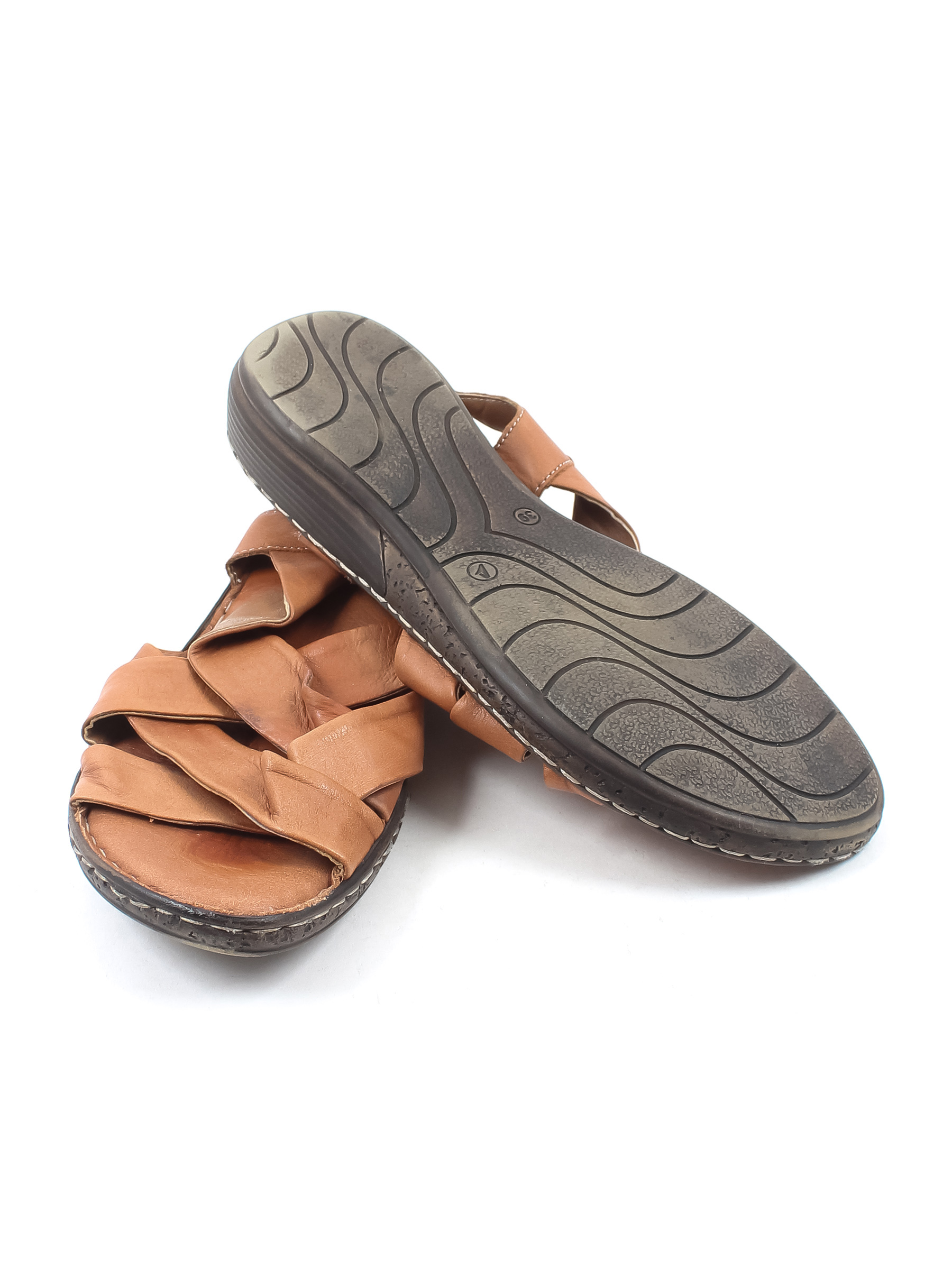 Есть небольшой износ подошвы. Замятия и загрязнения на материале.