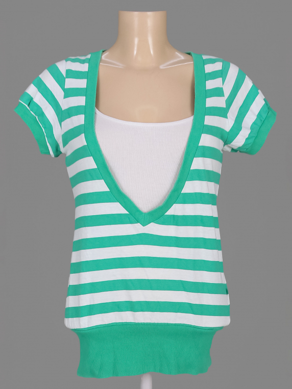 Майка не в комплекте. Есть катышки, на спине пятнышко, ткань потускнела, местами немного вытянулась.