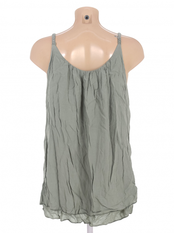 Маркировка на изделии отсутствует. Размер указан на основании замеров. На бретелях распускаются нити.