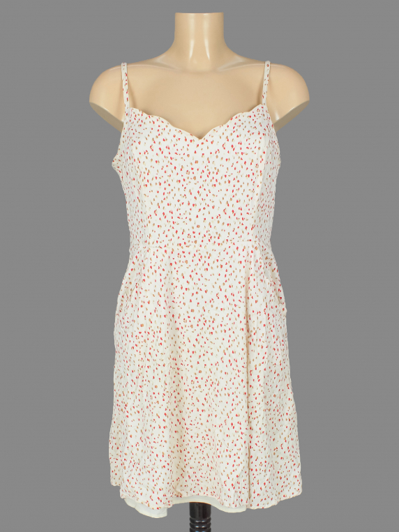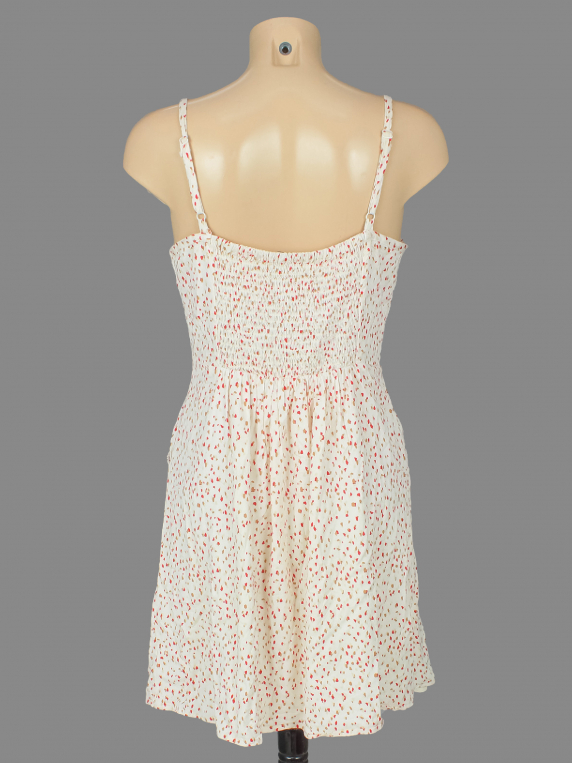 Маркировка на изделии отсутствует. Размер указан на основании замеров. Спереди на бретельке распустилась строчка по шву.