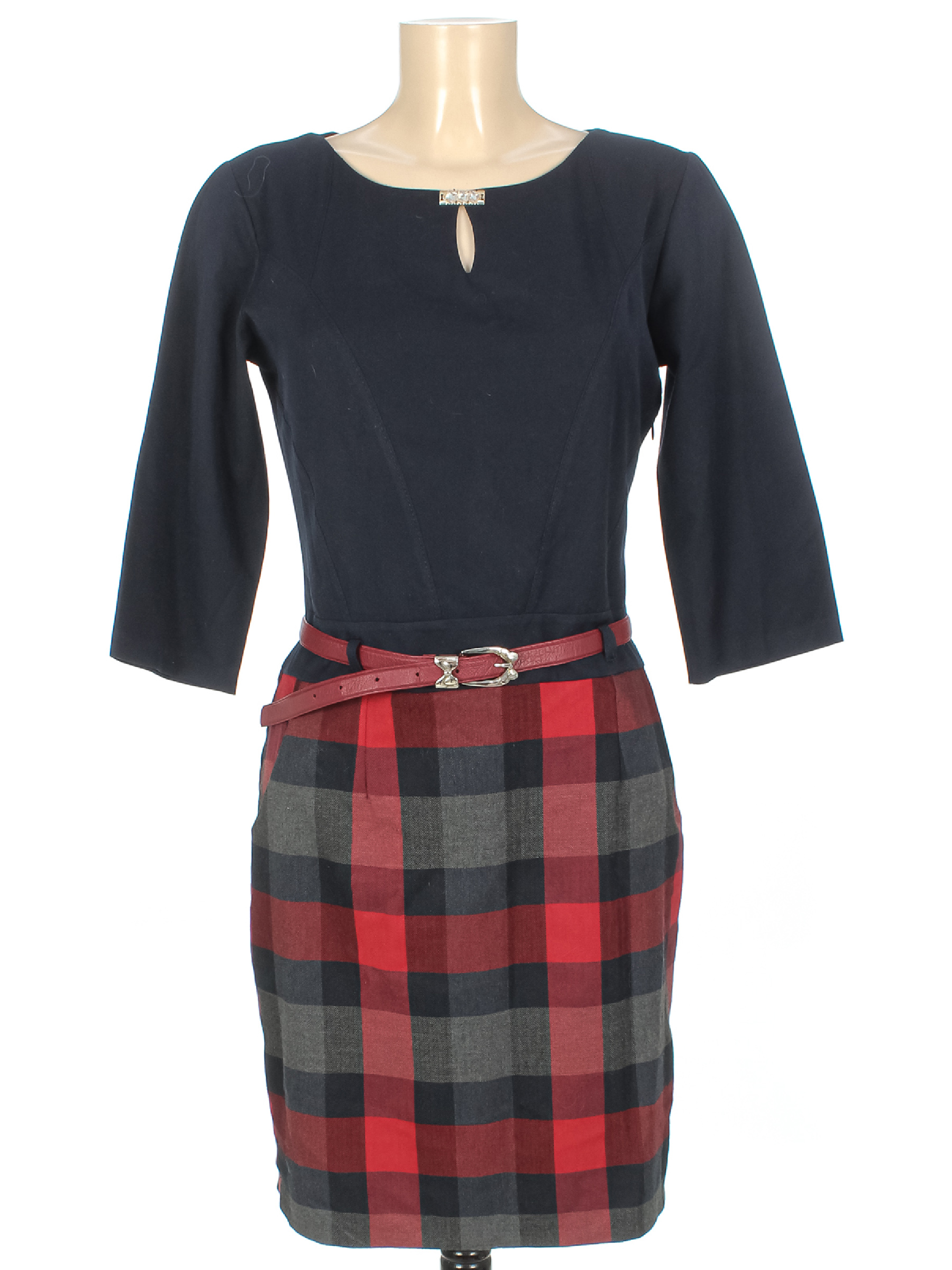Местами есть катышки, загрязнения, в том числе в области подмышек. Пояс в комплекте.