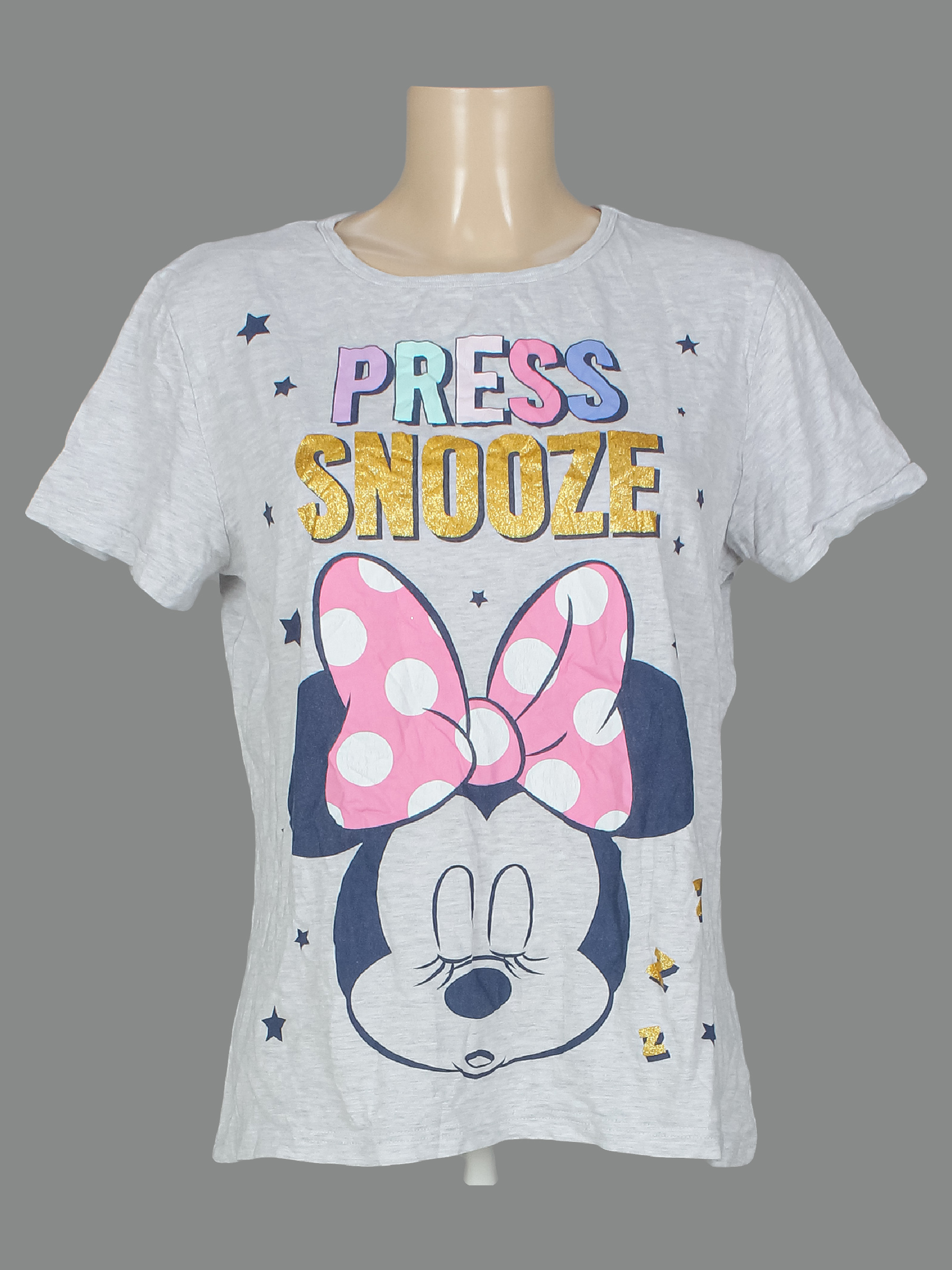 Размер 12-14. Есть мелкие катышки, ткань потускнела, местами вытянулась, трескается краска на принте.