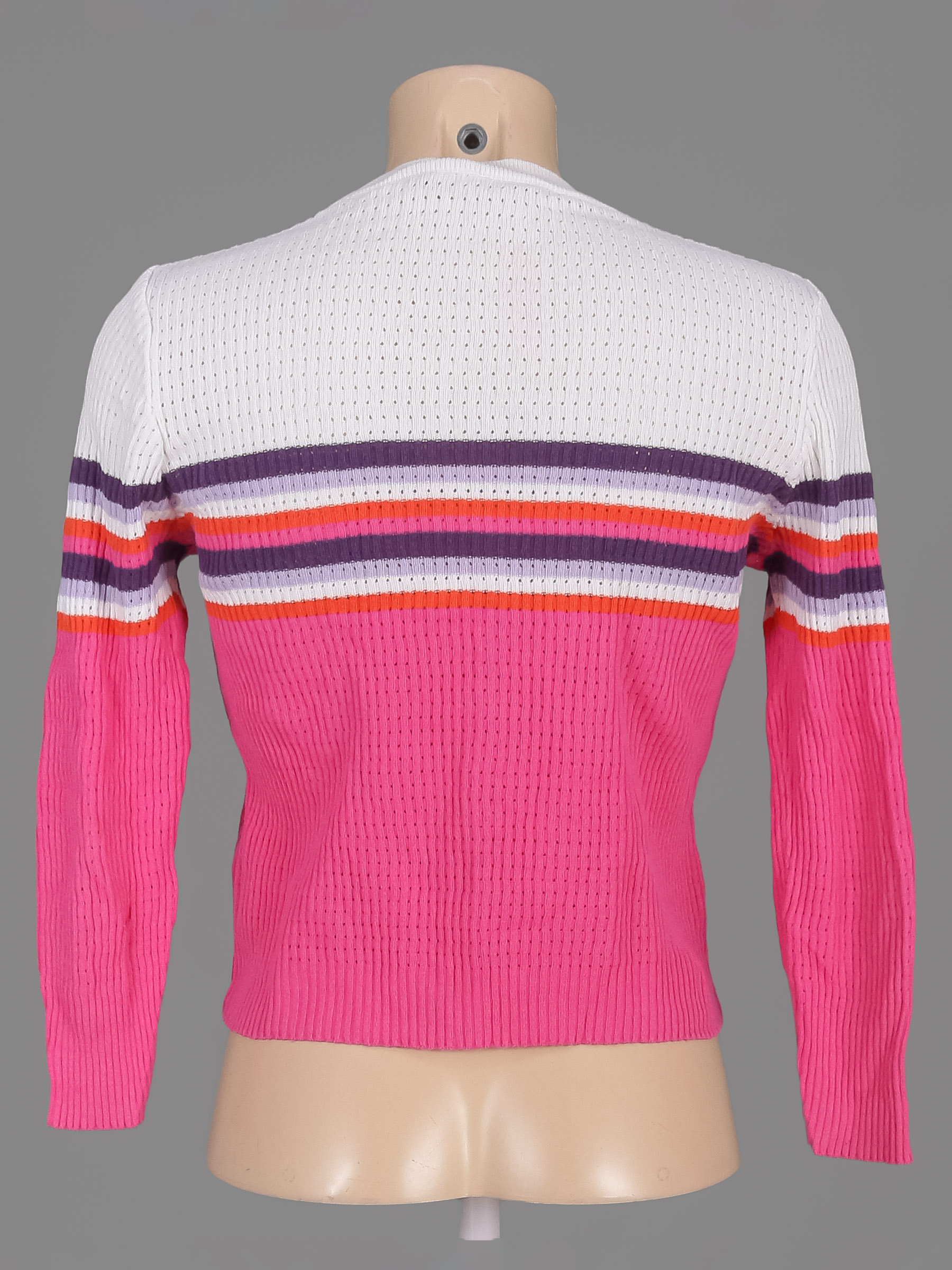 Есть мелкие катышки. Цвет немного пожелтел. Материал по низу немного растянут.