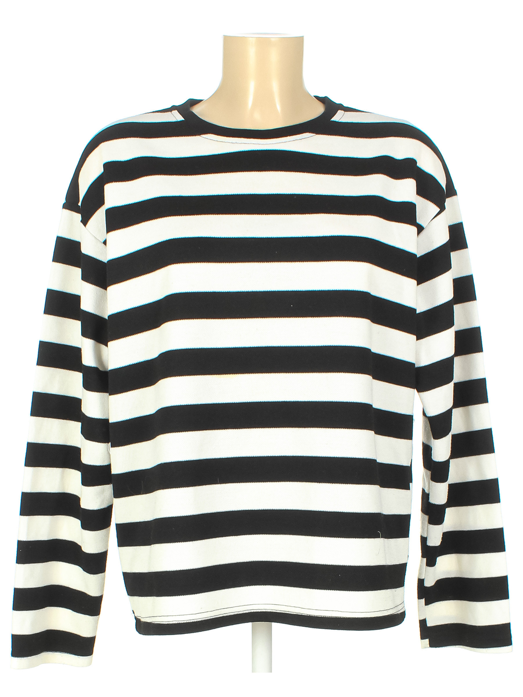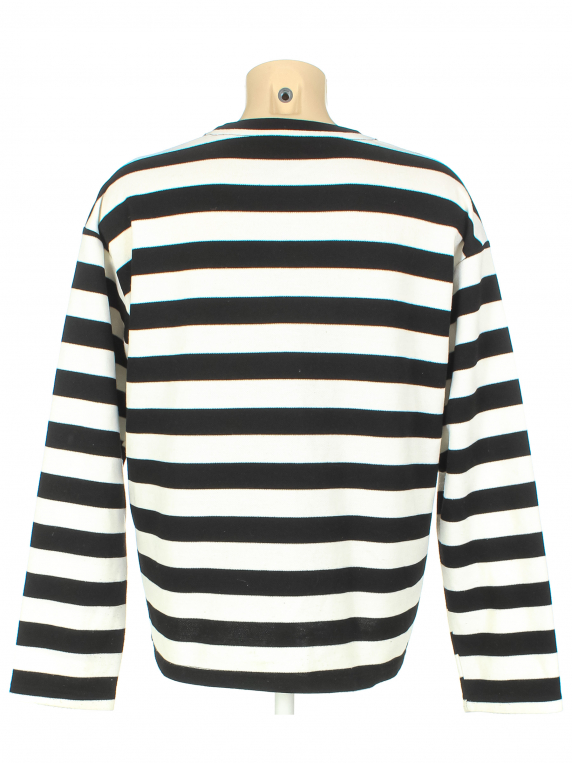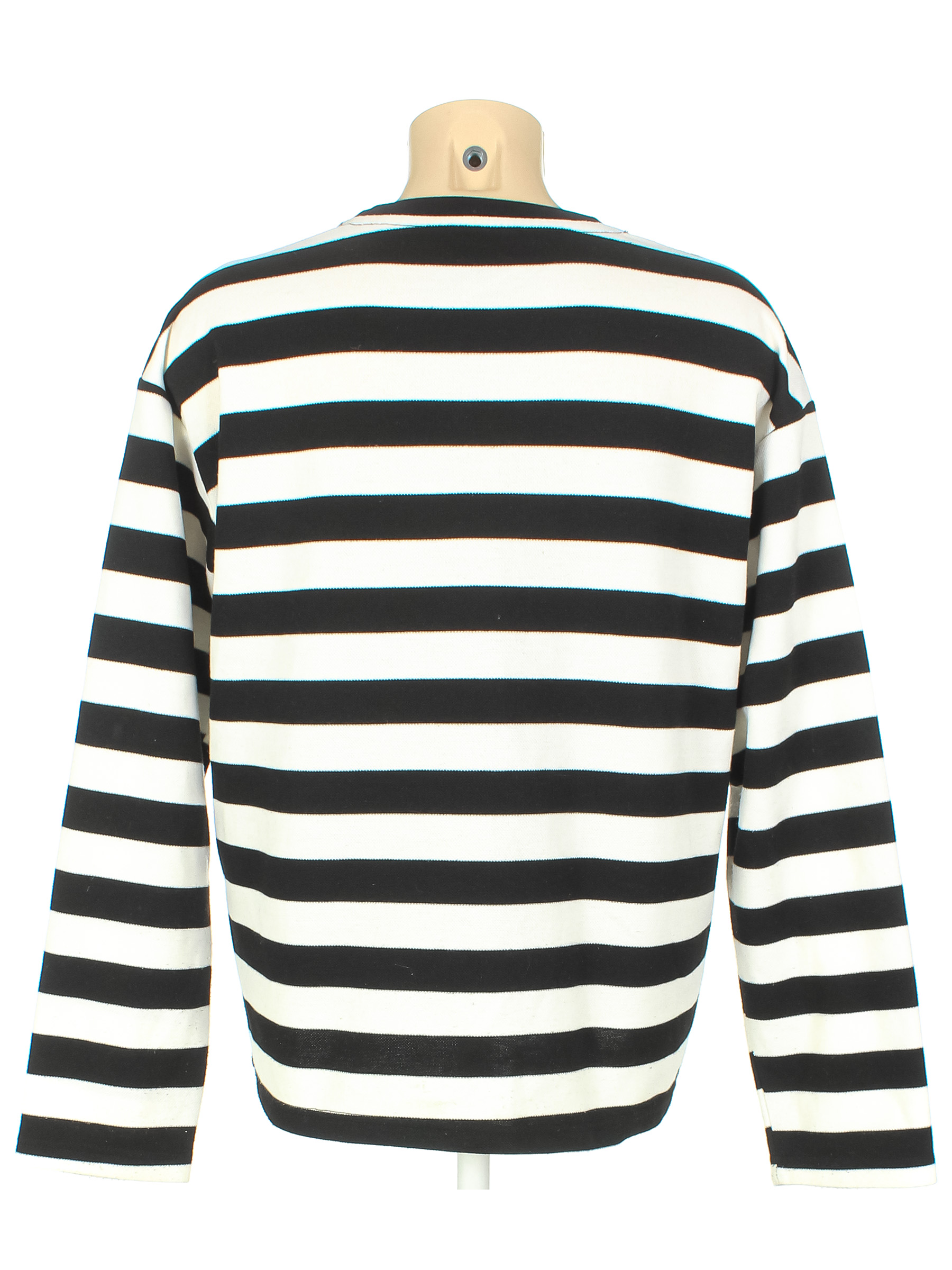 Маркировка на изделии отсутствует. Размер указан на основании замеров 50-552. Черно-белый. Замер рукава указан от горловины. Есть катышки, небольшие загрязнения, несколько затяжек.