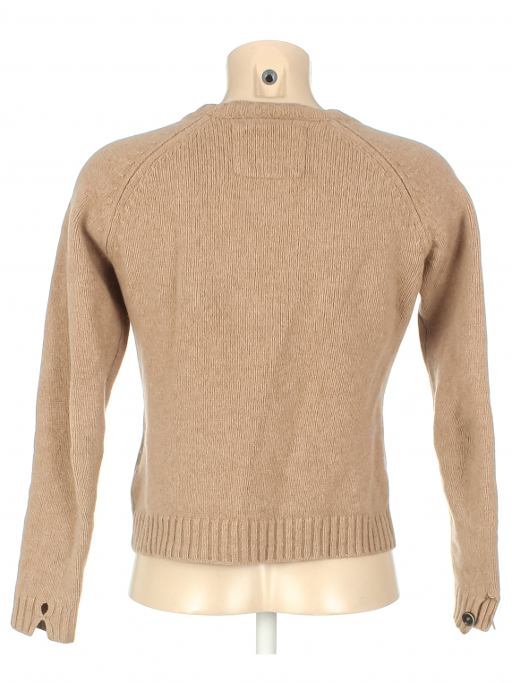 Маркировка на изделии 38. Размер указан на основании замеров. Замер рукава указан от горловины. Есть катышки, загрязнения, на манжетах нет пуговицы и повреждение материала, ткань местами немного вытянулась.